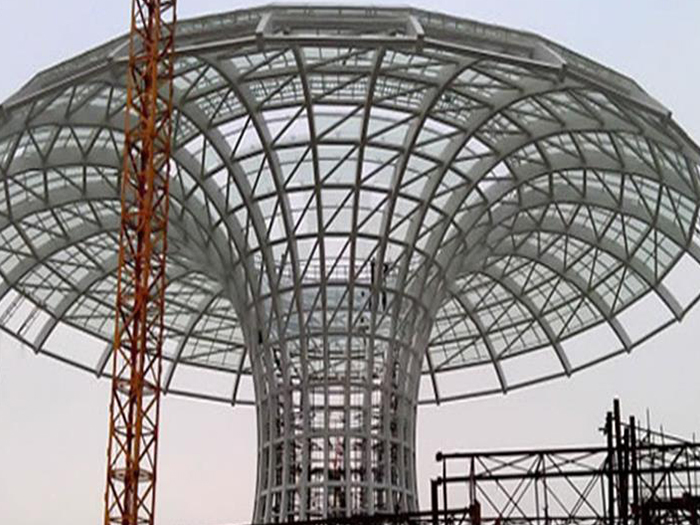 二、球形网架结构因其结构新颖,受力合理,自重轻、用钢量低等优点。如大型体育场馆球形二连浩特螺栓球网架、公共场馆球形网架、电厂二连浩特螺栓球网架、水泥工业球形网架、仓储物流球形网架、二连浩特干煤棚工业球形网架、二连浩特收费站二连浩特加油站球形网架、展览中心、影剧院、商场、航站楼、候车厅、工厂二连浩特车间、仓库、电视塔等球形螺栓球节点网架。国内球形网架结构主要分为:二连浩特焊接球节点网架及螺栓球节点网架两种。螺栓球节点网架其构件工厂内加工量较大,现场安装便捷,适用于现场工期紧,二连浩特施工条件、用电量受制约,网架形状复杂、二连浩特杆件定位困难的异形结构。螺栓球节点球形网架系统基本由二连浩特杆件、螺栓球、支撑支座等组成。按照节点形式可分为交叉二连浩特桁架体系、四角锥体系、三角锥体系等。支撑方式多为固定支座支撑。对于大面积、大跨度及有特殊受力或伸缩要求的网架结构可采用橡胶支座、滑移支座、球铰支座等支撑形式,以满足结构自身的受力稳定、均衡,便于内力释放等设计要求。